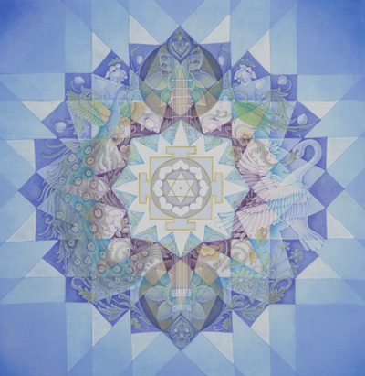 “Saraswati also stands high in yoga, as Sushumna channel through which the Kundalini energy may rise upwards. Through breath control, the solar and lunar energies are merged into the neutral Kundalini energy. The lunar channel is symbolized as the river Ganga, riding the crocodile. The solar energy is the Yamuna goddess and river, while the central neutral channel is Saraswati. The upward flow of Kundalini through the central Saraswati channel then pierces the chakras and brings liberation.”
